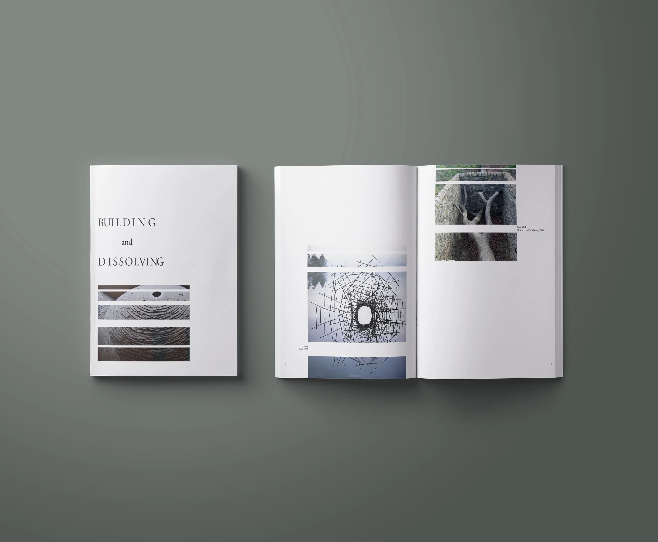 Before starting my design, I watched the documentary on how Andy Goldsworthy work as a sculptor. In the documentary “Rivers and Tides”, Andy creates sculptures and arts using natural materials like wood, leaves, ice, and stone… His artwork will eventually disappear and fall apart as time pass. After the documentary, I came up with this concept that tightens up the whole book, which is “Building and Dissolving”.